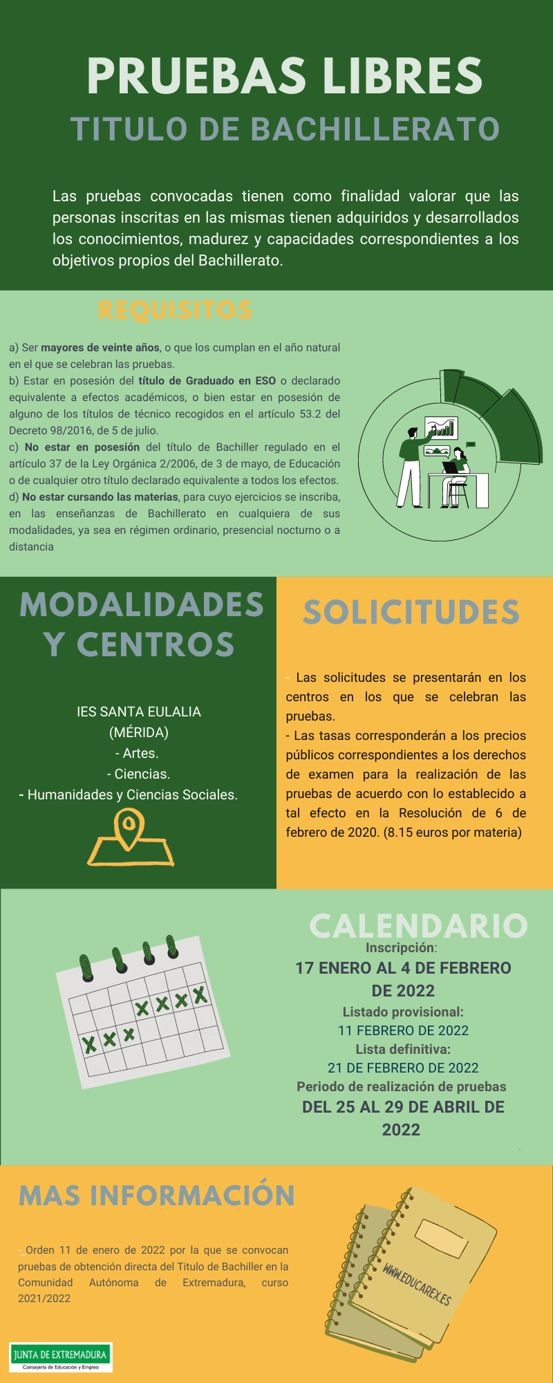 - Orden reguladora: Orden de 11 de enero de 2022, de pruebas para la obtención directa del Título de Bachiller en Extremadura. DOE de 14 de enero de 2022.